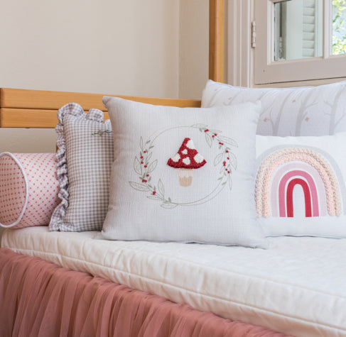 Embroidered Magic Mushroom Decorative Pillow - Little Fairy