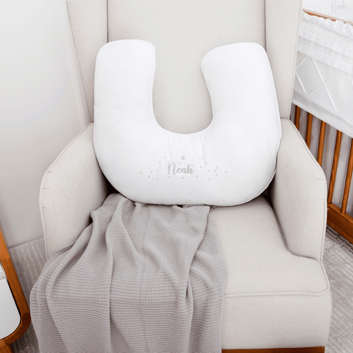 Personalized 300 Thread Count Baby Nursing Pillow, White with Gray (Choose your baby's name)