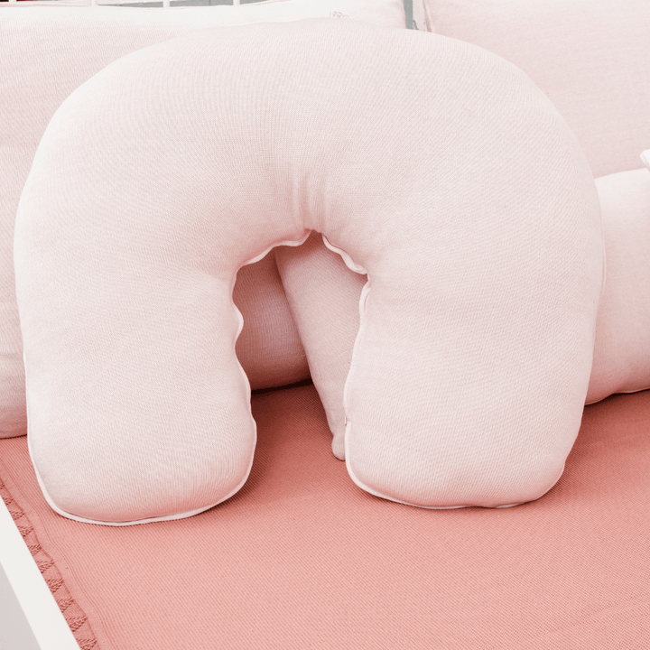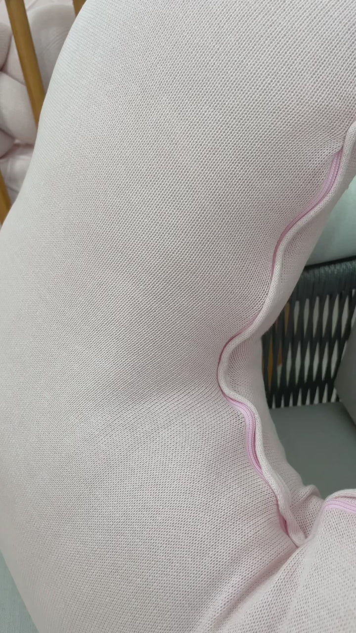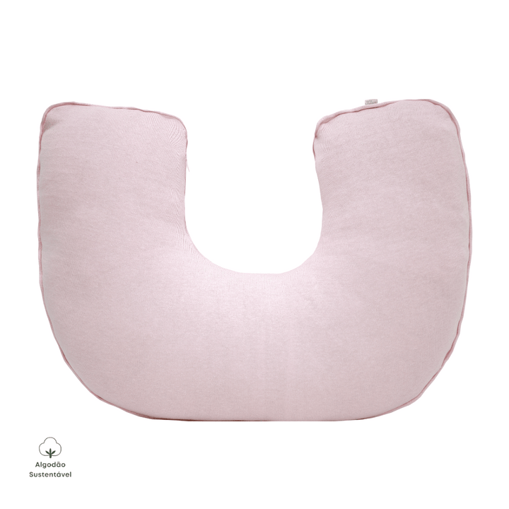 Nursing pillow made of knit fabric with sustainable cotton yarn in Ballerina Pink, a sophisticated and classic color. This product helps mom during breastfeeding, providing comfort and accompanies the most beautiful stage of her life, valuing quality materials that reduce environmental impact.