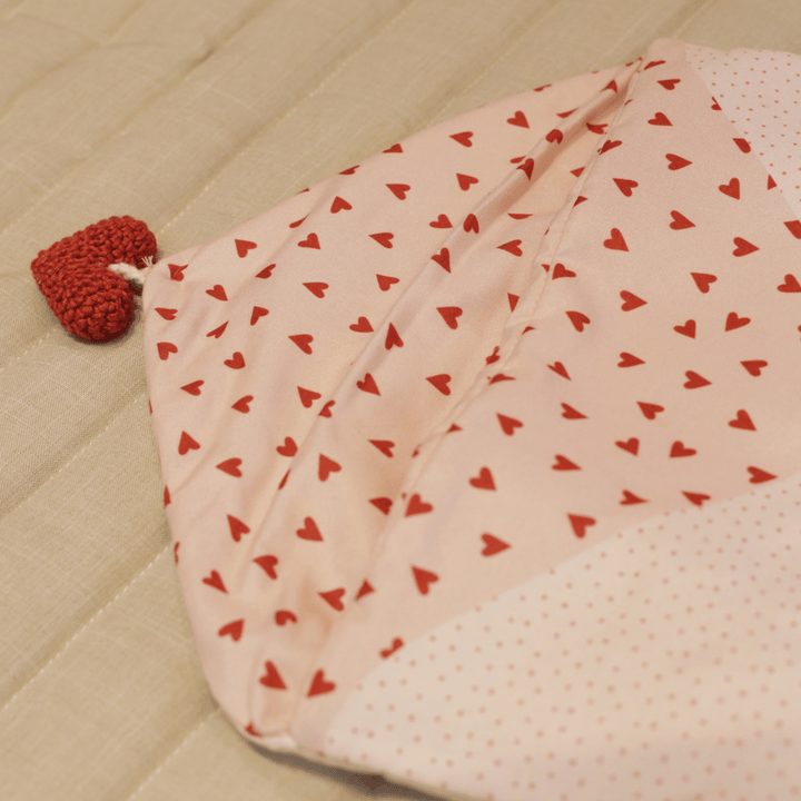 Your envelope format With a wooden button and a handmade crochet heart, it transforms everyday life into a loving gesture. The heart and polka dot print adds delicacy and style, making it a unique gift option.