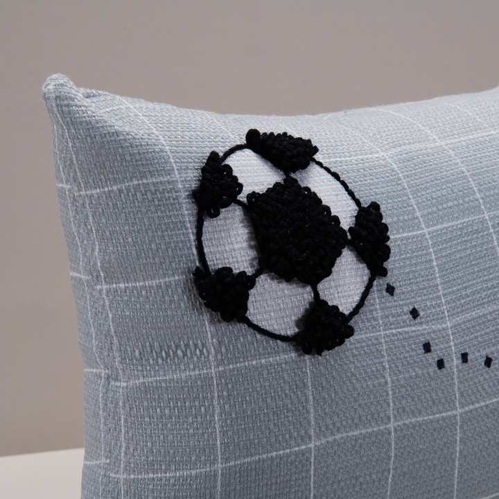 A touch of charm and adventure for your little star's layette. The Moving Ball Pillow brings the poetry of a dream goal, with each hand-embroidered stitch forming the trajectory of the ball—as if it were dancing across the field toward the net.