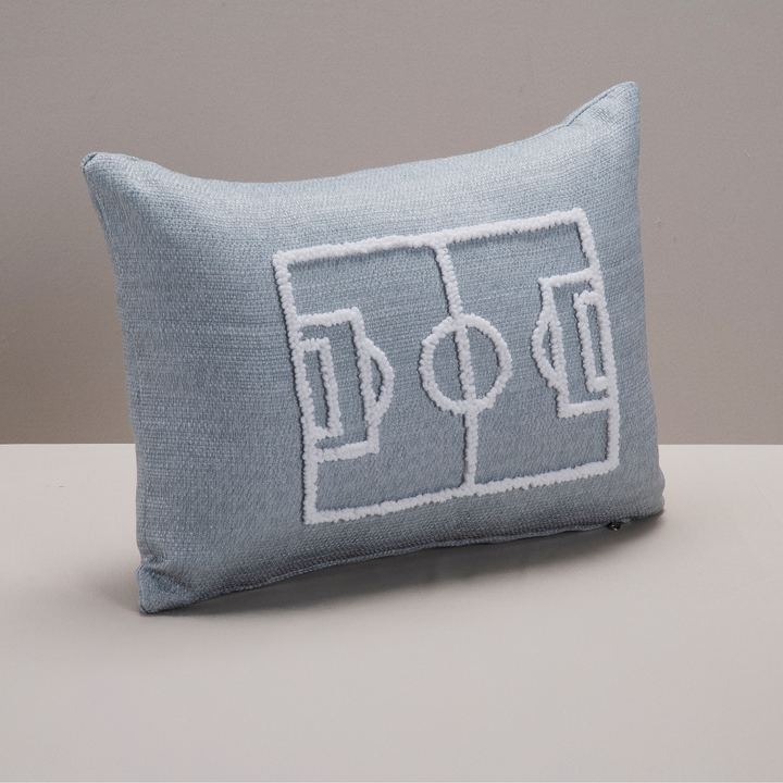 Hand-embroidered with artisanal delicacy , the piece features a soccer field design in high relief, with lines that evoke tactics and play. A creative touch that transforms any corner of the room into a true dream arena.