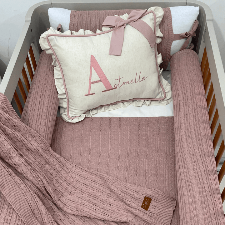 ✔️ Exclusive Personalization – Delicate embroidery with the baby's name. ✔️ Sophisticated Touch – Elegant design in Old Rose percale. ✔️ Safe Comfort – Hypoallergenic silicone filling. ✔️ Practicality – Zipper and filling for easy cleaning. ✔️ Handcrafted Product – Made with attention to the smallest details.