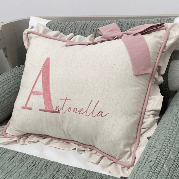 Personalized Linen Decorative Pillow Old Pink (Choose your baby's name)