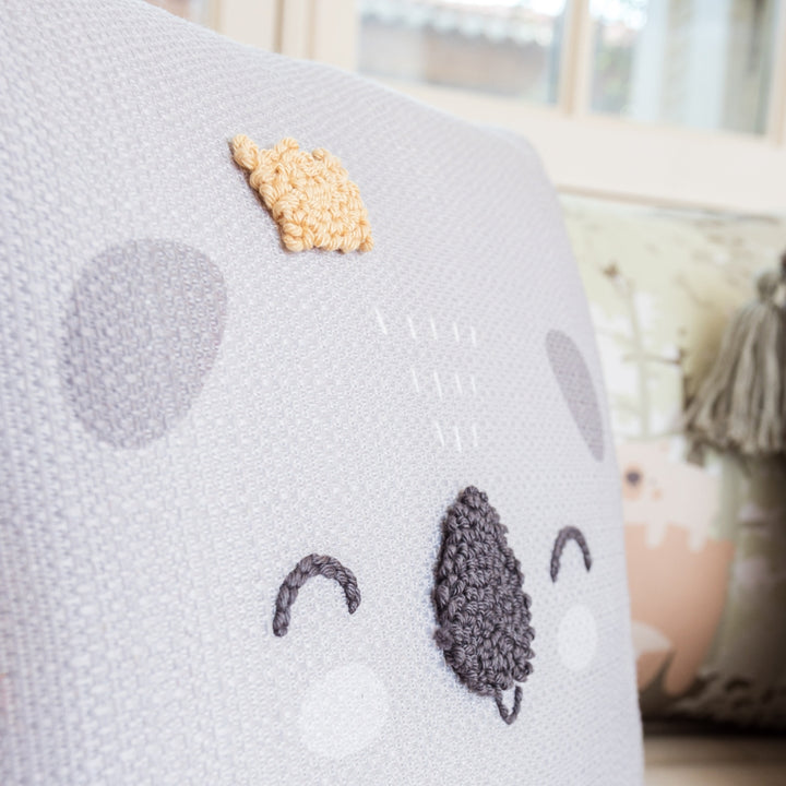 With the sweetest little face of the forest and hand-embroidered details, this pillow transforms the room into a nest of affection and tranquility.