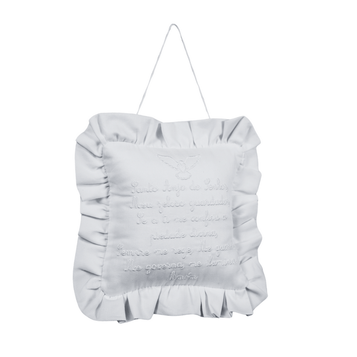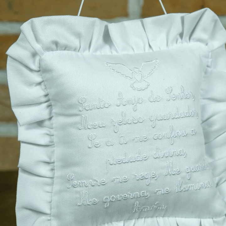 Decorative Pillow Pendant Prayer Holy Angel of the Lord Embroidered - Fustão Fabric