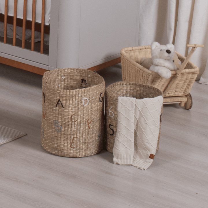 The ABC Embroidered Toy Organizer Basket combines functionality and elegance to make your daily routine more practical and your space more welcoming. Made from natural straw , its handcrafted design highlights natural textures, bringing a rustic and sophisticated touch to your baby's room.