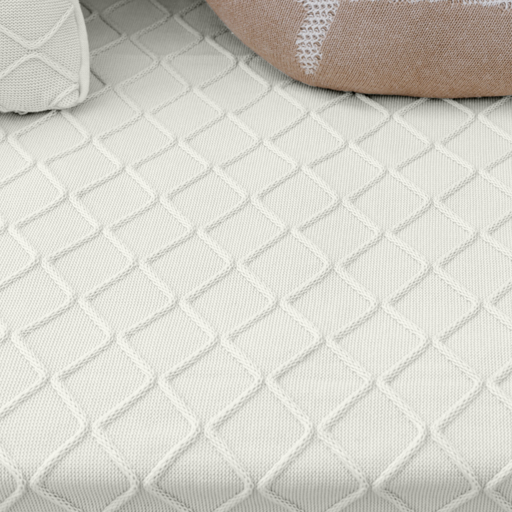 Crib bedspread made of knit fabric with sustainable cotton yarn. Perfect for wrapping your baby in the crib, it can also be used as a decorative item on armchairs or sofas. Accompany the most beautiful stage of your life, while using quality materials that reduce environmental impact.