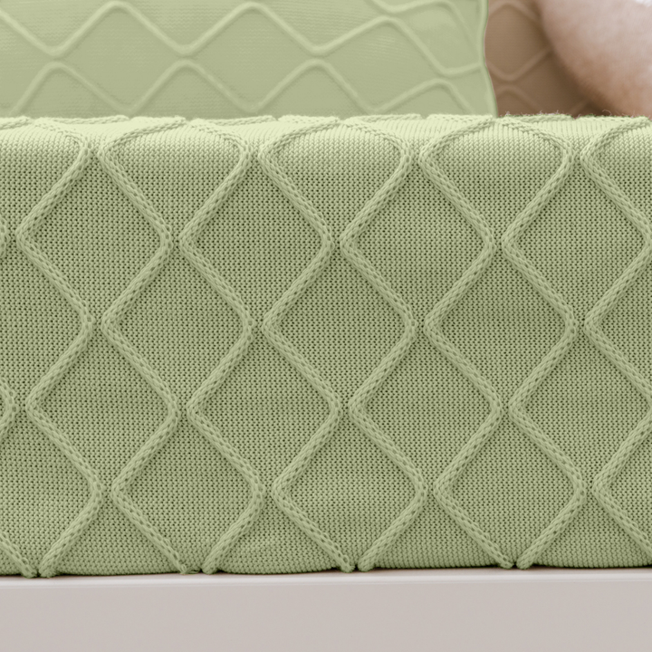 Cozy Cottage Green Cotton Knit Crib Coverlet