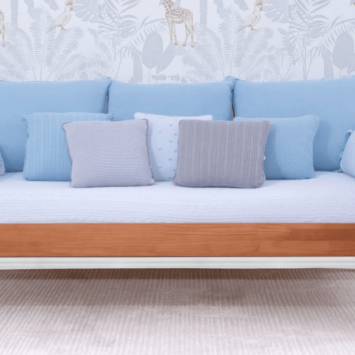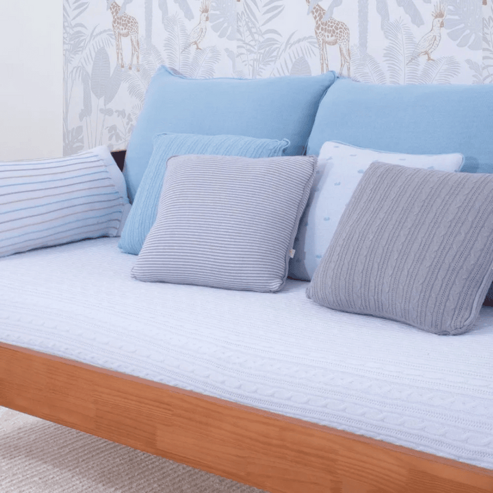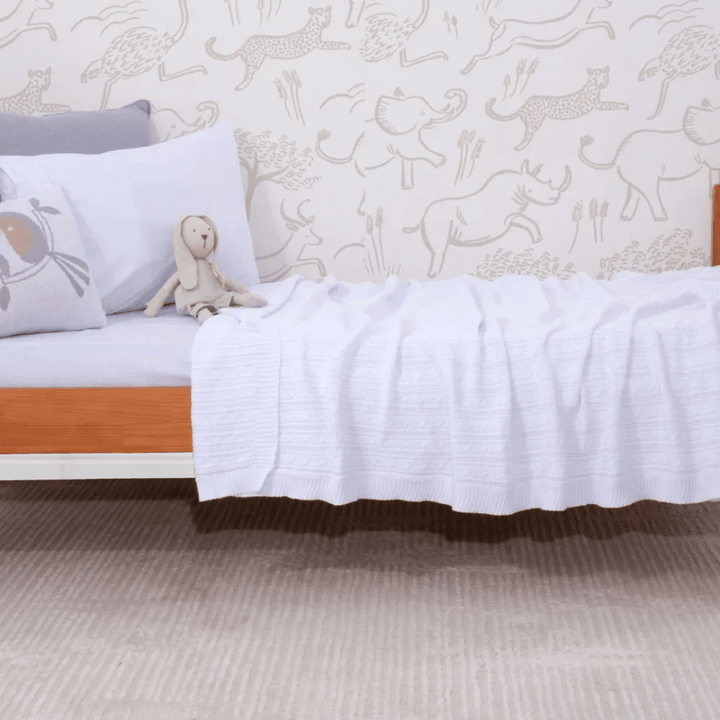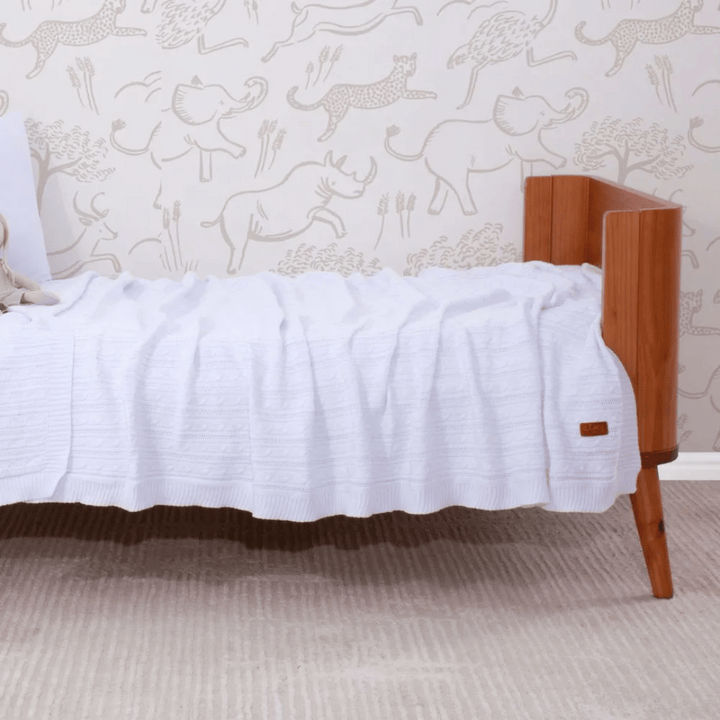 Made from sustainable cotton yarn, the White Bedspread with a braided weave is ideal for accompanying the baby in the bedroom. Perfect for single beds or a nanny bed, it brings warmth, softness, and beauty to the room—creating a welcoming, functional, and harmonious space.