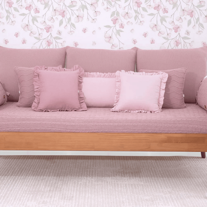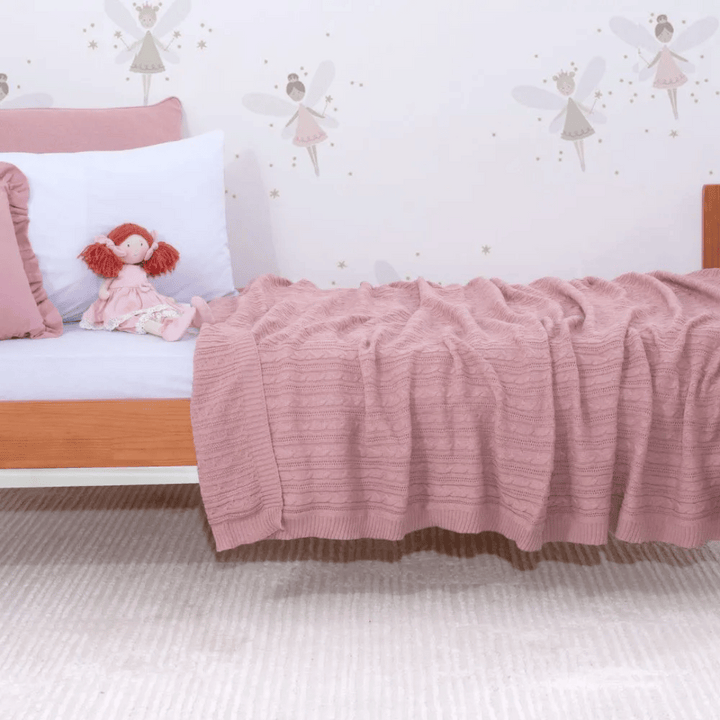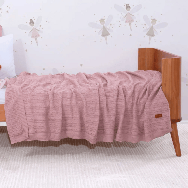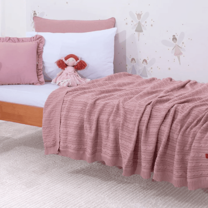 Made from sustainable cotton yarn, the Old Pink Bedspread with braided weave is perfect for those who accompany the baby in the room, whether in a single bed or a nanny bed.