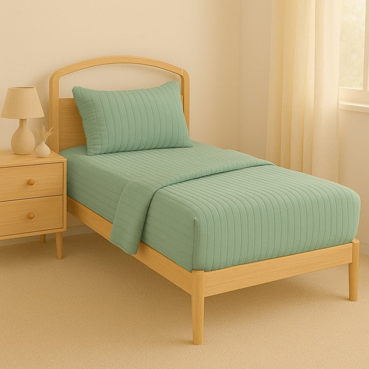 Dry Green Single Bedspread with Slatted Detail and Elastic – Elena Kids Line