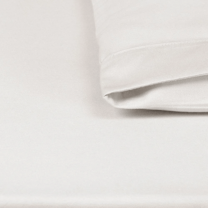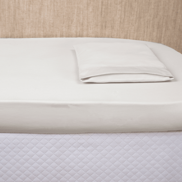 Its ivory color brings elegance and delicacy, matching any decor style, while the elastic on the bottom sheet ensures a perfect fit on the mattress — practical for everyday use, safe for a good night's sleep.