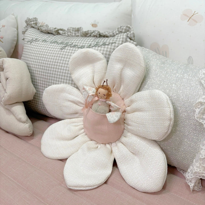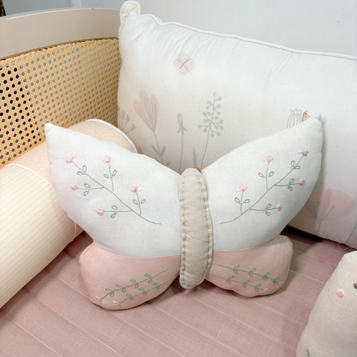 Essential pieces for comfort and support while using the baby bed. Floral print with soft embroidery reminiscent of nature, voluminous padding, and a removable zippered cover.