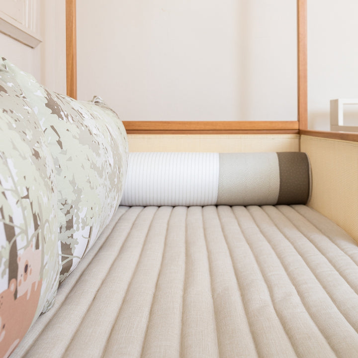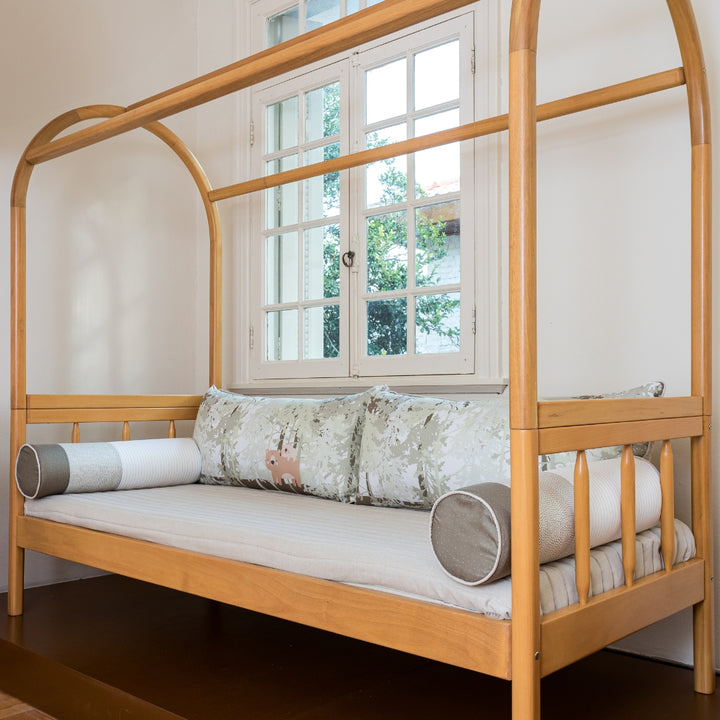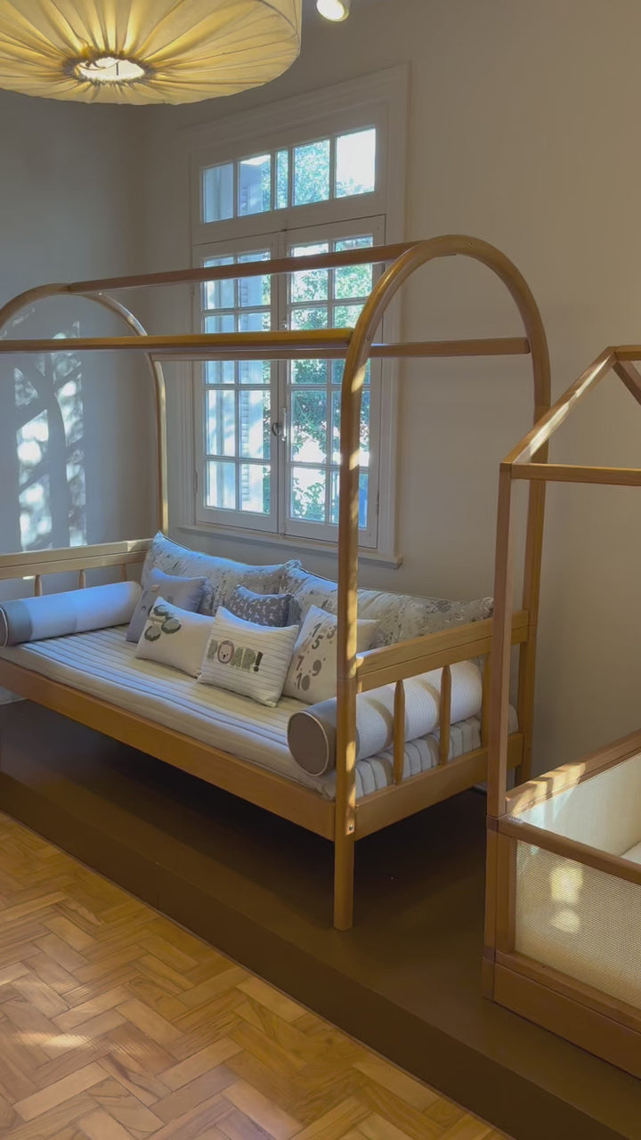 The Savana Corner Bed Kit was designed to transform an extra bed into a welcoming, charming, and tranquil space. Combining delicacy and a natural theme, it invites children and adults to moments of rest surrounded by a soft and affectionate aesthetic. 🌿🐾