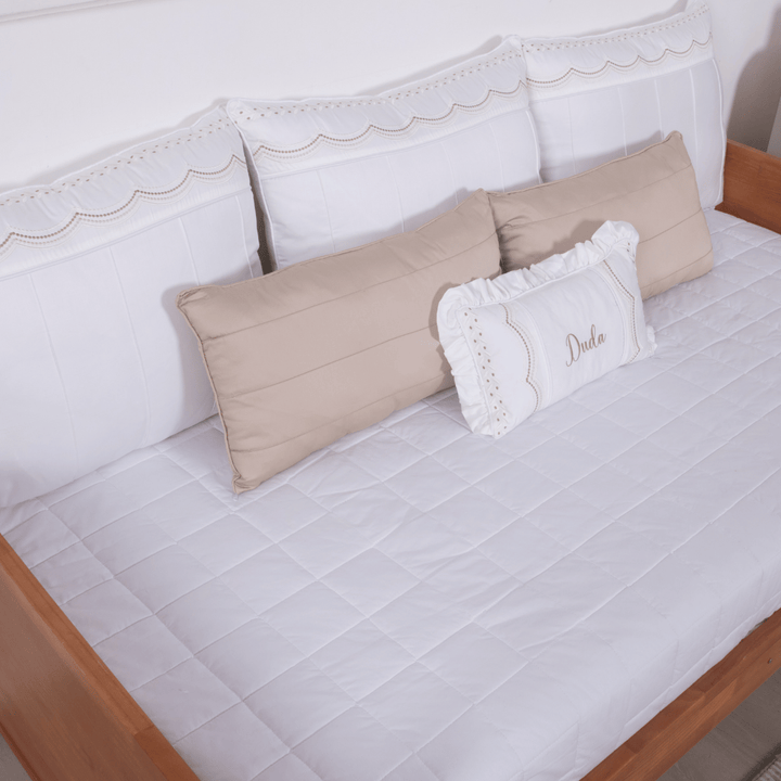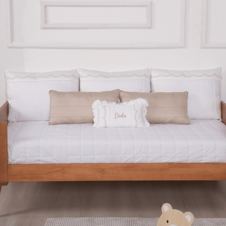 The Serenité White and Beige Auxiliary Bed Kit was designed to bring elegance, comfort, and functionality to your baby's layette. Made from 400-thread-count 100% cotton percale , this set provides an ultra-soft and fun feel, ensuring maximum comfort for moments of rest.