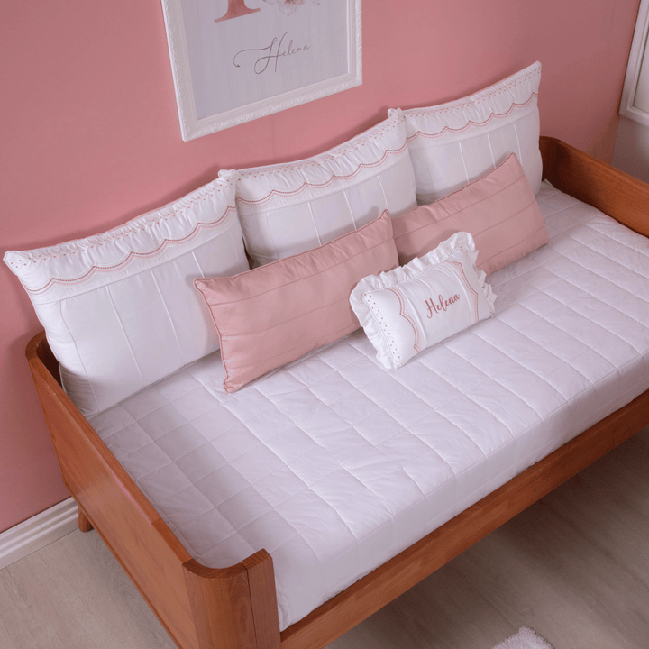 THE Serenité Auxiliary Bed Kit White with Rosé is the perfect combination of elegance, softness and functionality for the baby's layette. Made in 400 thread count 100% cotton percale , this set offers an ultra-soft and breathable touch, ensuring a more comfortable night's rest.