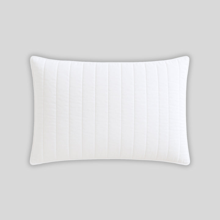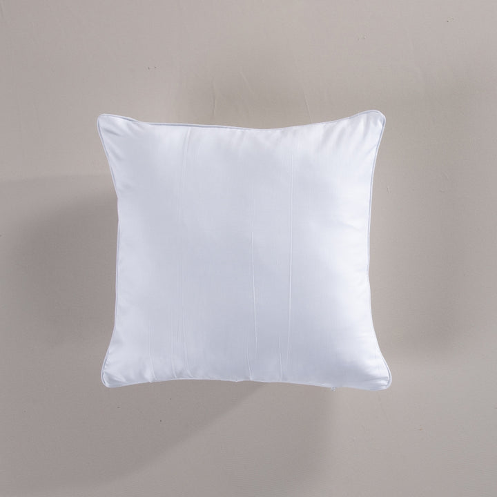 Made from 230-thread-count, 100% polyester percale, with a soft feel and refined finish. The pillows are filled with silicone fiber, ensuring volume and durability. The protective braid, knitted from 100% sustainable cotton, adds a handcrafted, modern touch to the composition.
