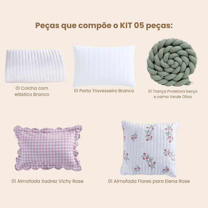 Delicacy, comfort, and a touch of charm in every detail. The Elena Rosê Kit with Protective Braid transforms a child's room into a welcoming and sophisticated space, perfect for witnessing the new stages of childhood.