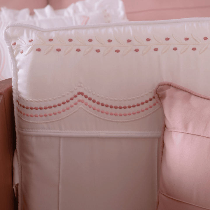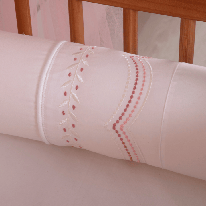 THE Serenité Rosê Crib Kit was developed to provide safety, comfort and a touch of elegance to your baby's layette. Made in Made with 400 thread count, 100% cotton percale , this set offers an ultra-soft and breathable feel, ensuring your little one's well-being while sleeping.