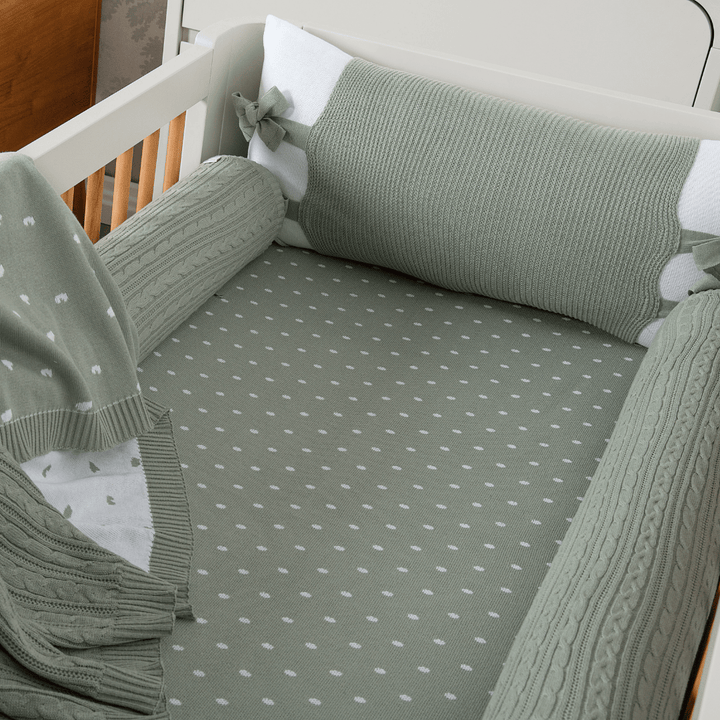 5-Piece Crib Kit in Lightweight, Olive Green Cotton Knit