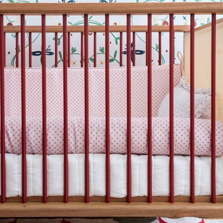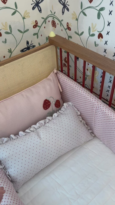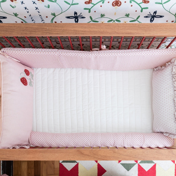 Delicate and welcoming, the Strawberry Field 6-Piece Crib Kit was developed to ensure safety and comfort for your baby with a charming and personality-filled look. With its exclusive design and soft tones, it transforms the crib into a true nest of affection.🍓