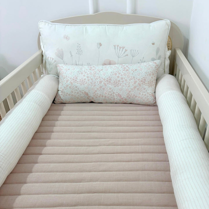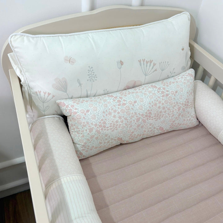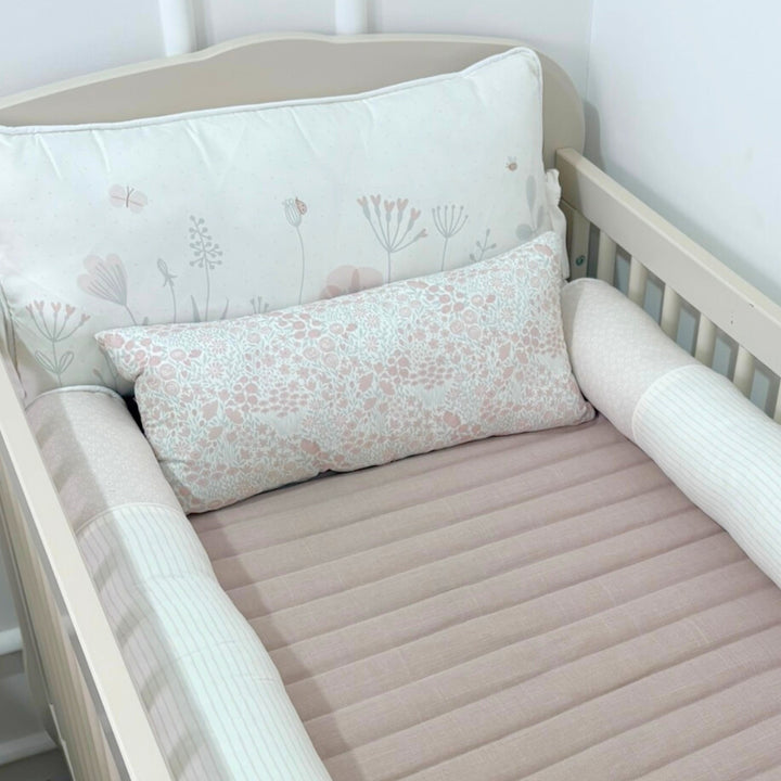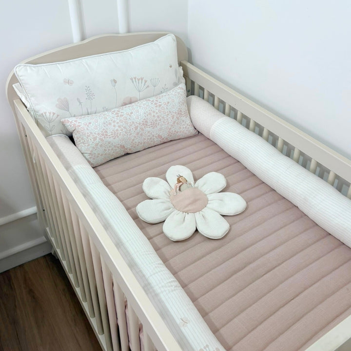 Soft, with reinforced sides and a smooth finish, it features delicate embroidery reminiscent of wildflowers, lovingly protecting your baby's sleep. -