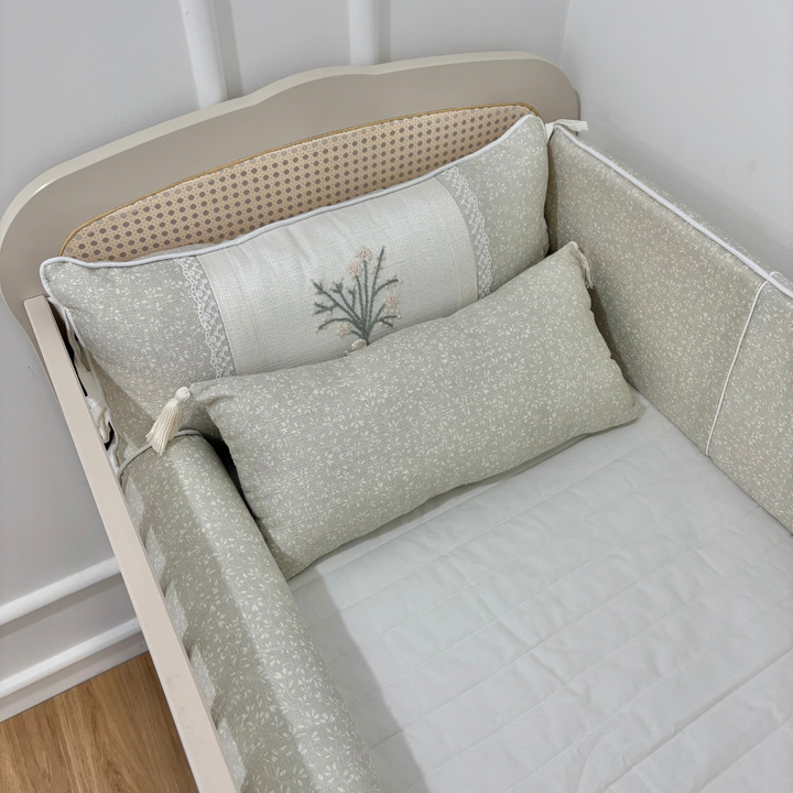 Be inspired by wildflowers and the delicacy of the first days of life with the Dreams in the Garden Crib Kit 🌾💖. Each piece was created to wrap your baby in comfort, security, and the poetic aesthetic of the Mom's Garden Collection—with neutral tones, cozy textures, and embroidery reminiscent of a natural, light orchid.