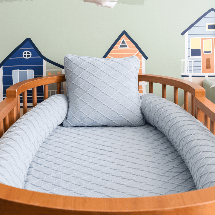 The Cozy Cottage Crib Kit brings warmth and sophistication to your baby's nursery. Made from 100% cotton knit, it's soft and secure, providing comfort in every detail. With a delicate design and soft tones, this set is perfect for creating a welcoming and harmonious environment in your baby's room.