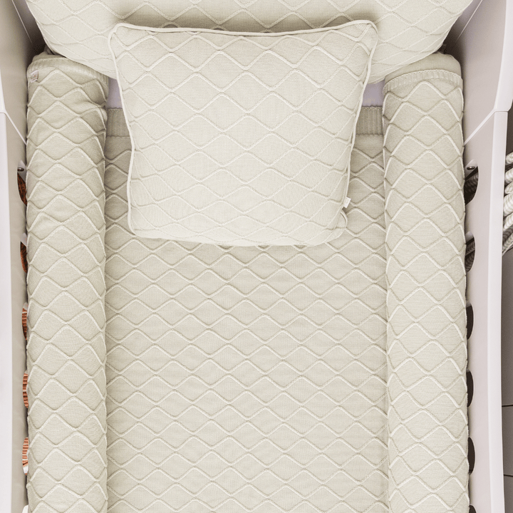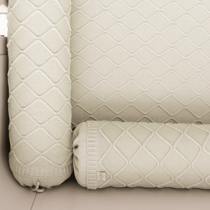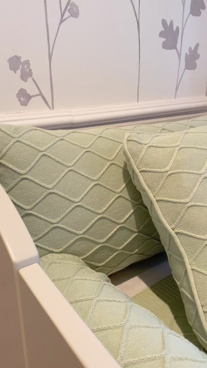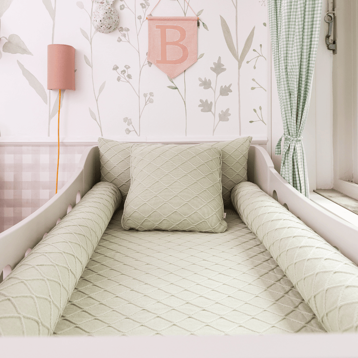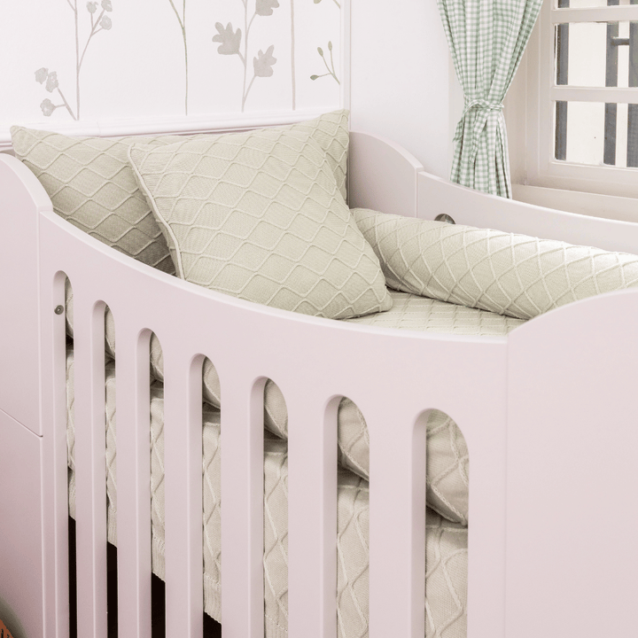 The Cozy Cottage Verde Greens Kit is the perfect choice for a cozy, safe, and stylish crib. Comprising six pieces made from 100% cotton, the kit offers a soft touch and just the right amount of warmth for baby's first moments. Its soft green hue, inspired by nature, creates an atmosphere of calm and balance—ideal for a child's room.