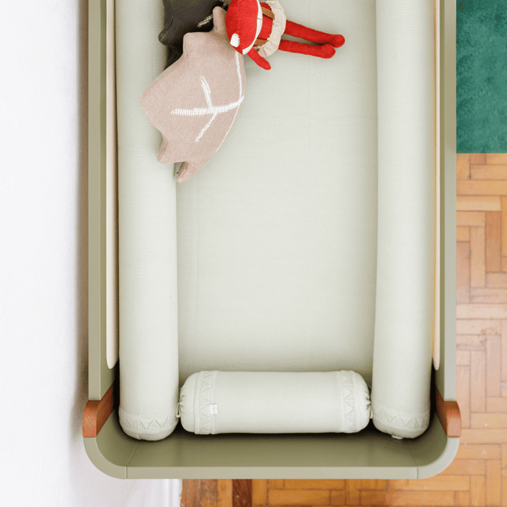 More than just functional, the Forest Greens Crib Kit is a versatile decorative item . The matching pillows and bedspread add charm and sophistication , and can be used beyond the crib—on armchairs or chairs, enriching the decor with elegance and warmth .