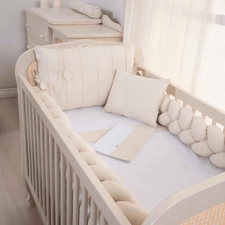 Transform your baby's nursery with the charm and softness of the Classic Linen Crib Kit . Made from 100% cotton linen , this set strikes the perfect balance of style, functionality, and comfort , offering a natural and sophisticated touch to your baby's first corner.