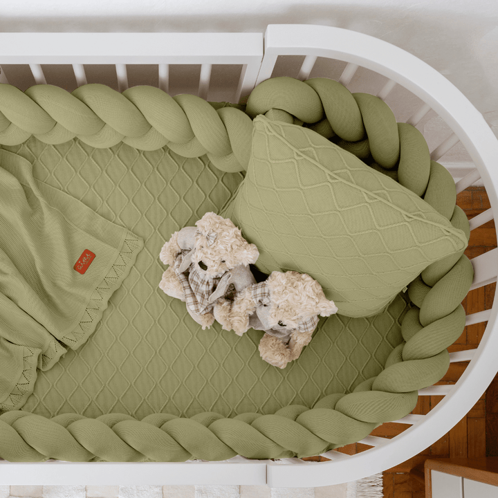 Each piece is carefully crafted from 100% cotton knit , ensuring a soft, hypoallergenic feel that's safe for baby's sensitive skin . The cactus green hue adds a touch of freshness, nature, and harmony to the room, creating a peaceful and cozy atmosphere.