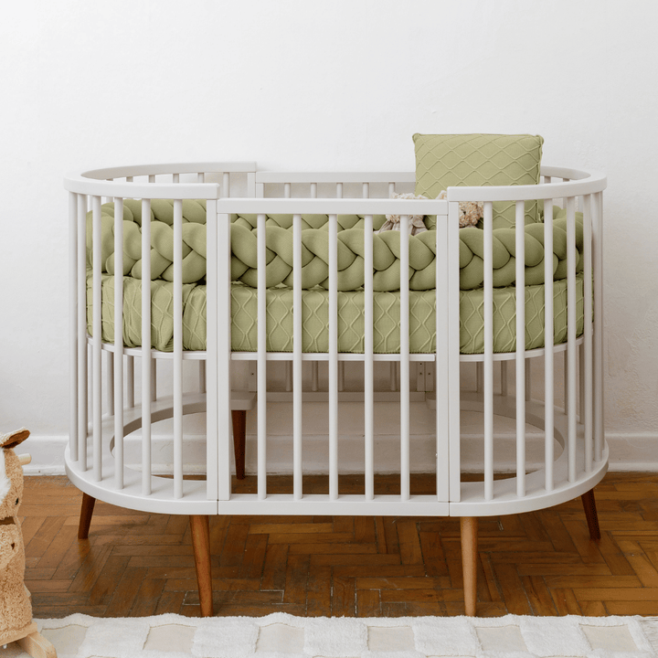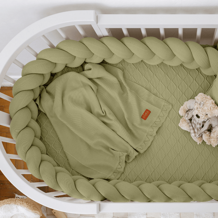 The Tricot 3-Piece Cozy Cottage Crib Set in Cactus Green is perfect for moms who value superior quality, elegant design, and attention to detail . It transforms your crib into a safe, cozy, and stylish haven.