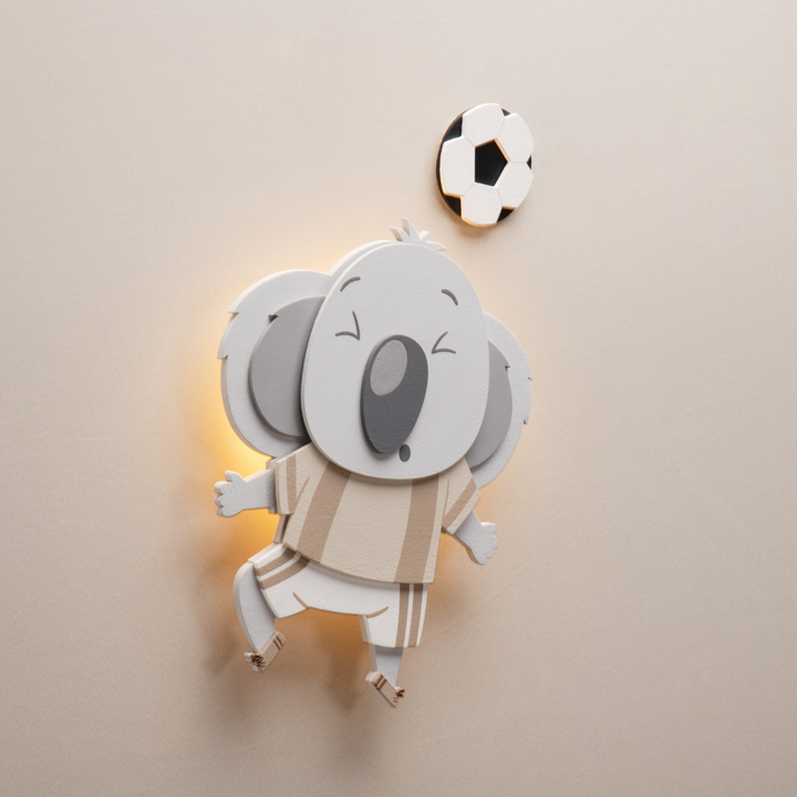 Between dribbling and cuddling, a new dream idol is born: the friendly Koala Player , who now also shines in the baby's room! The Koala Player Wall Lamp is more than a functional item—it's an invitation to transform rest time into a playful and cozy moment, where imagination runs wild like a ball on the lawn.