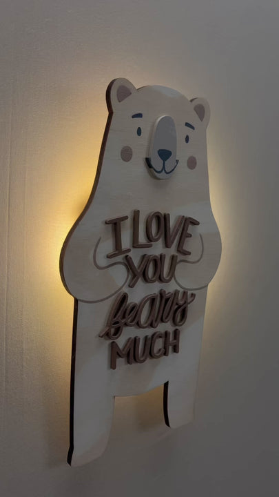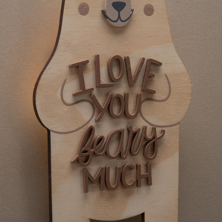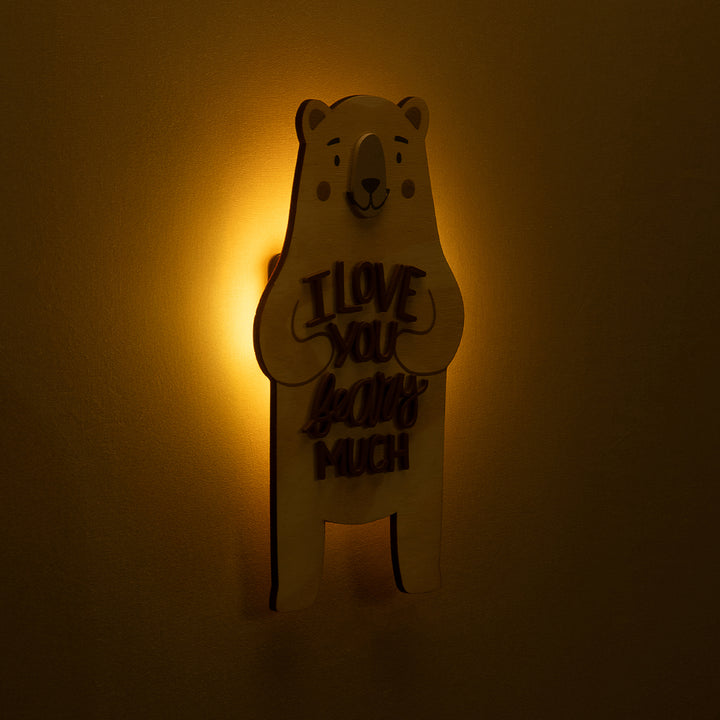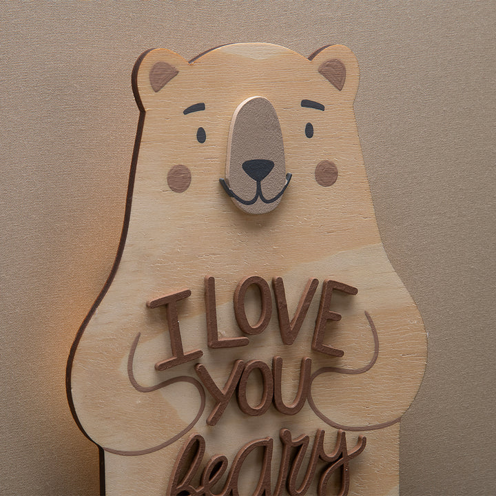 The Loving Bear Wall Lamp was created to warm your baby's room with tenderness and enchantment. Its teddy bear-shaped design conveys a warm message, perfect for wrapping decor with love and warmth. The prominent phrase, engraved in high relief, "I love you beary much," reinforces the bond of affection that the piece symbolizes. 💬💕