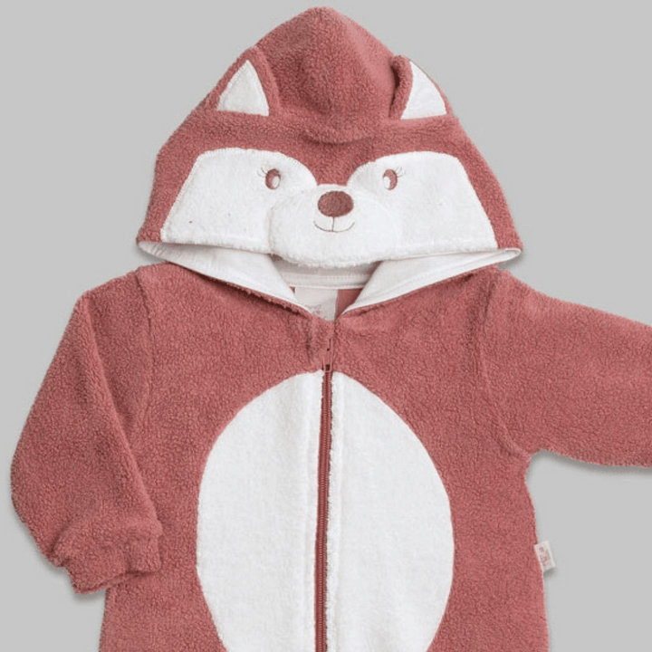 Fall in love with the Baby Animal Romper with Fox Hood , a piece that combines comfort, style and fun . Made from 100% cotton plush , it guarantees a soft touch and special care for your baby's sensitive skin .