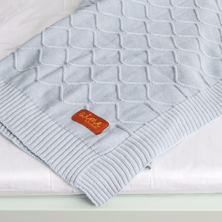 Cozy Cottage Blue Delicate Cotton Knit Baby Blanket