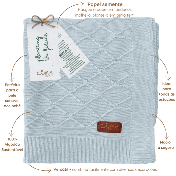 The Delicate Blue Cotton Knit Baby Blanket is the perfect combination of comfort, softness, and elegance for your baby's layette. Made from 100% hypoallergenic cotton , it provides a soft and cozy feel, ideal for newborns' sensitive skin.