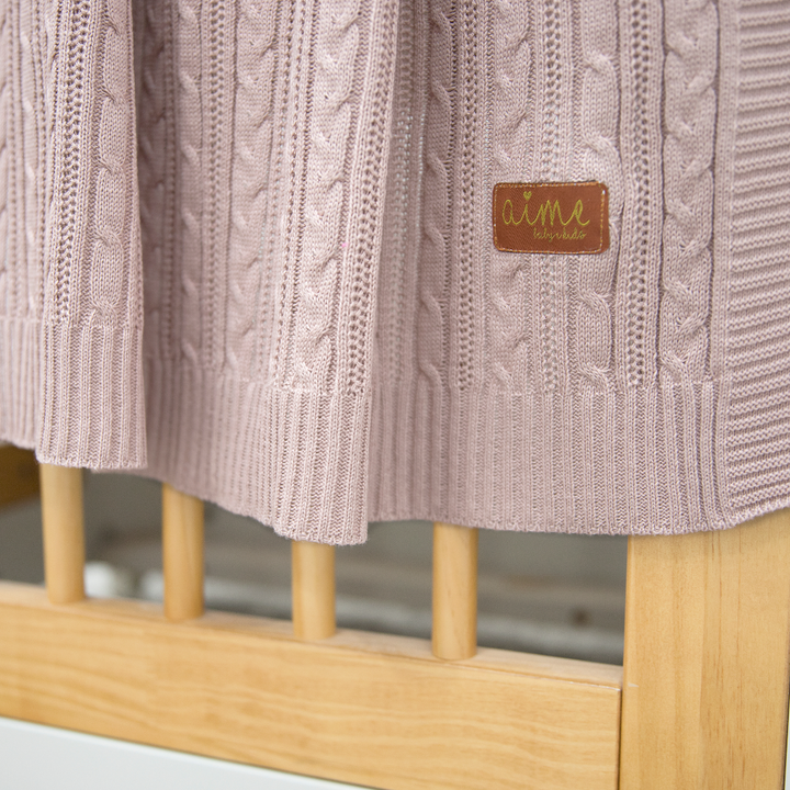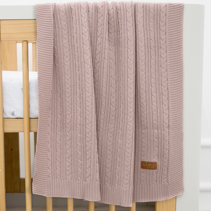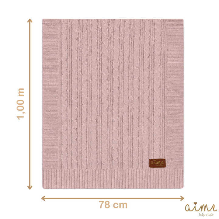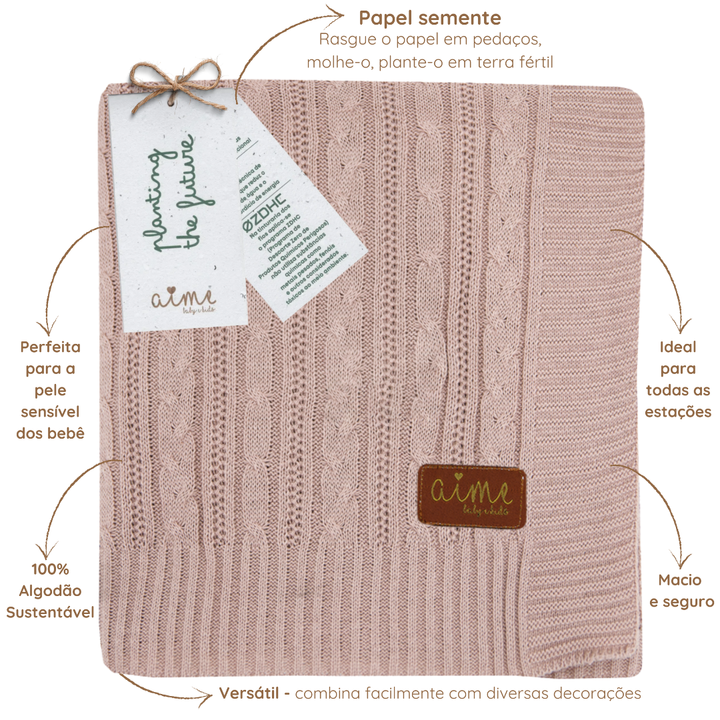The blanket's braided weave , combined with its Old Rose color, makes it a versatile and charming piece. Besides covering the baby in the crib , it can be used as a decorative item on armchairs or sofas , enriching the space with elegance and delicacy.