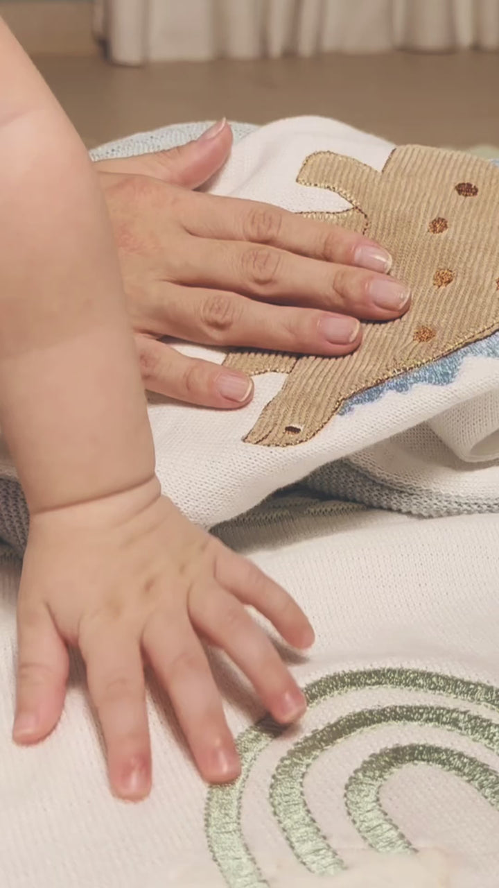With With playful designs and varied textures , the blanket stimulates touch and recognition of shapes and colors, making every moment even more special. It's also perfect for practicing tummy time , strengthening baby's muscles in a natural and fun way.