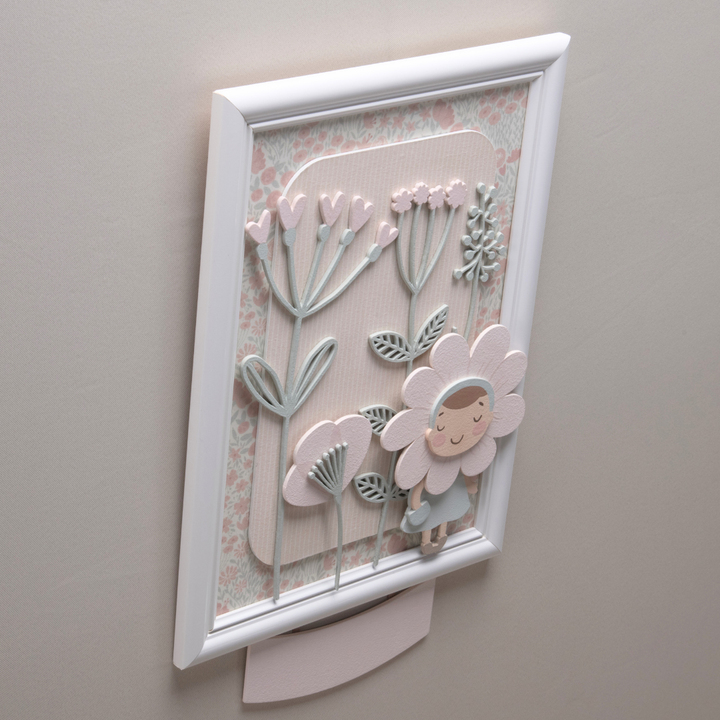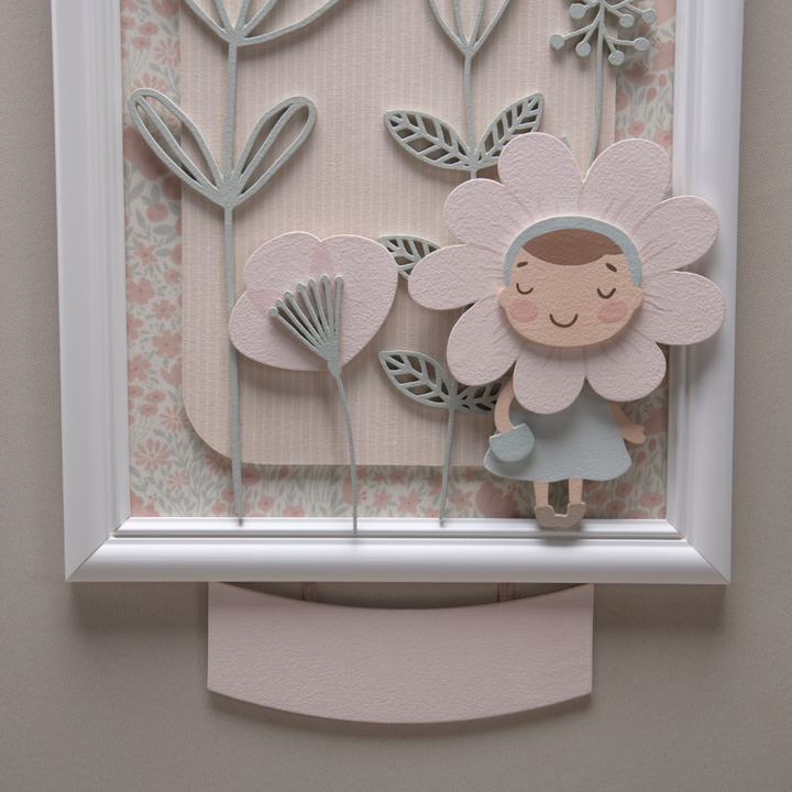 Ideal for hanging on the maternity door or in the baby's room, it has a delicate space to personalize with the name of the little flower that has just arrived.