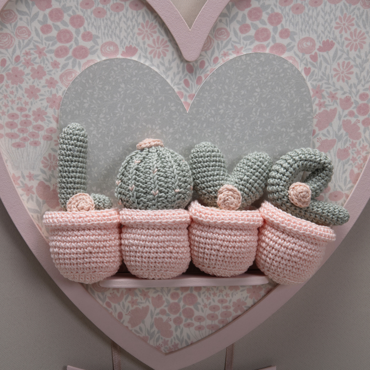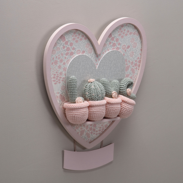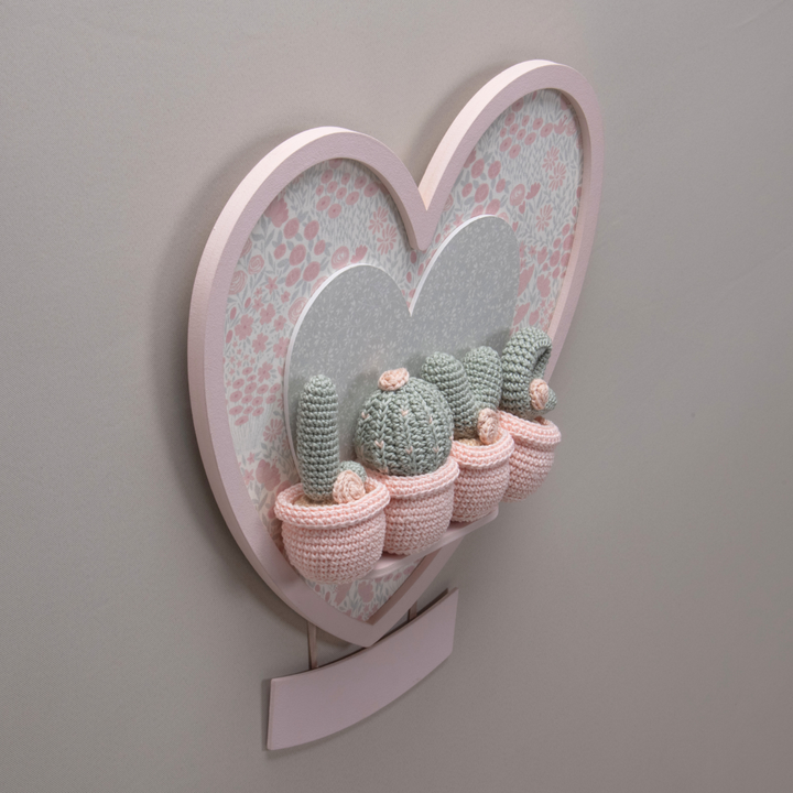 A tribute to the love that blossoms in the smallest details. The Hearts & Cacti Frameenchants with its delicate composition, where mini cacti handcrafted in amigurumiare delicately placed inside a heart—as if they were seeds of tenderness being lovingly cared for. 🌿✨