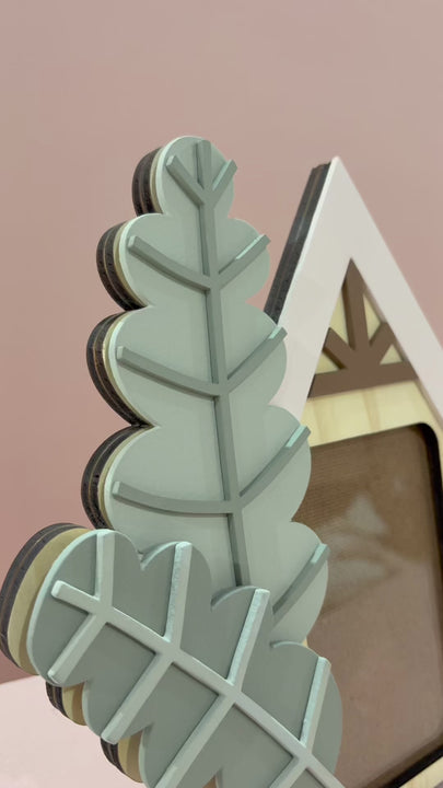 Celebrate the sweetest moments with the Enchanted Keepsake Picture Frame . With its charming house-shaped design and embossed leaf motifs, it brings a natural and welcoming atmosphere to your baby's room or any special space. Made of high-quality MDF and with protective glass, it's ideal for preserving memories with care and style.