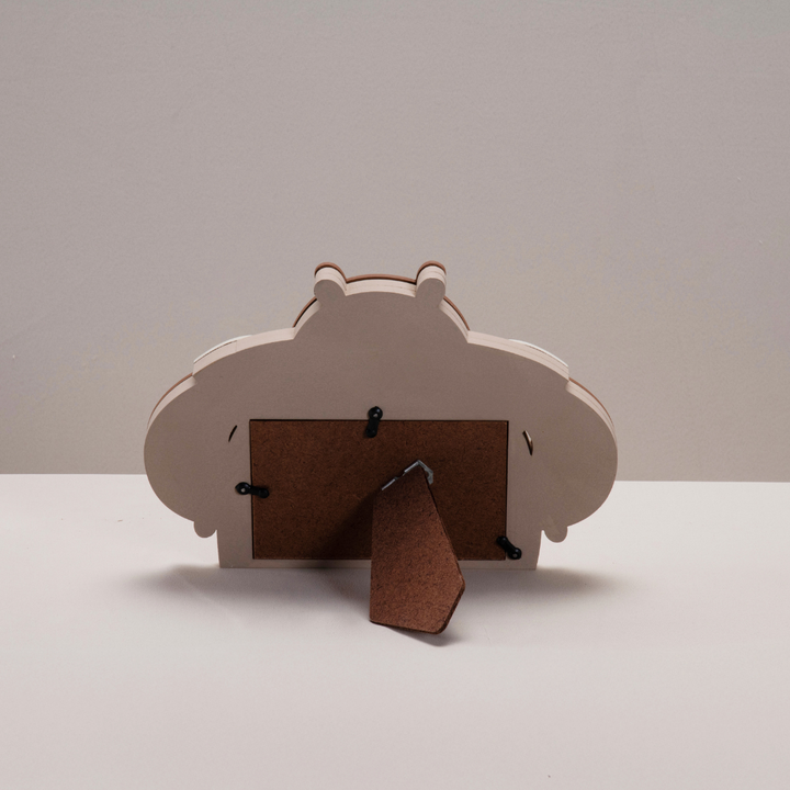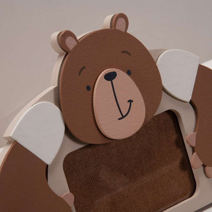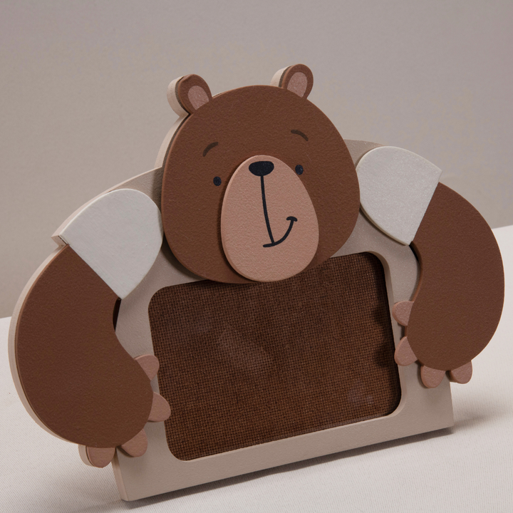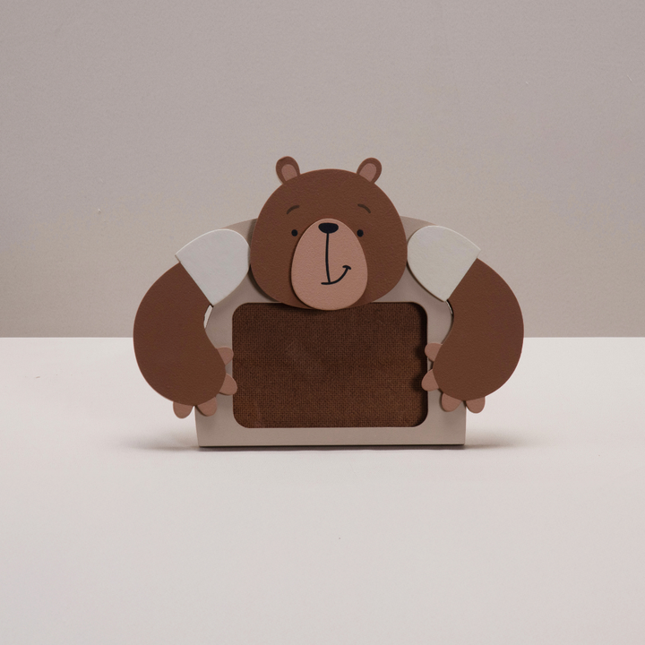 Made from 100% MDF with a detailed layered finish and rounded shapes, it features a cute teddy bear with arms embracing the frame as if protecting a great achievement. 🧸⚽