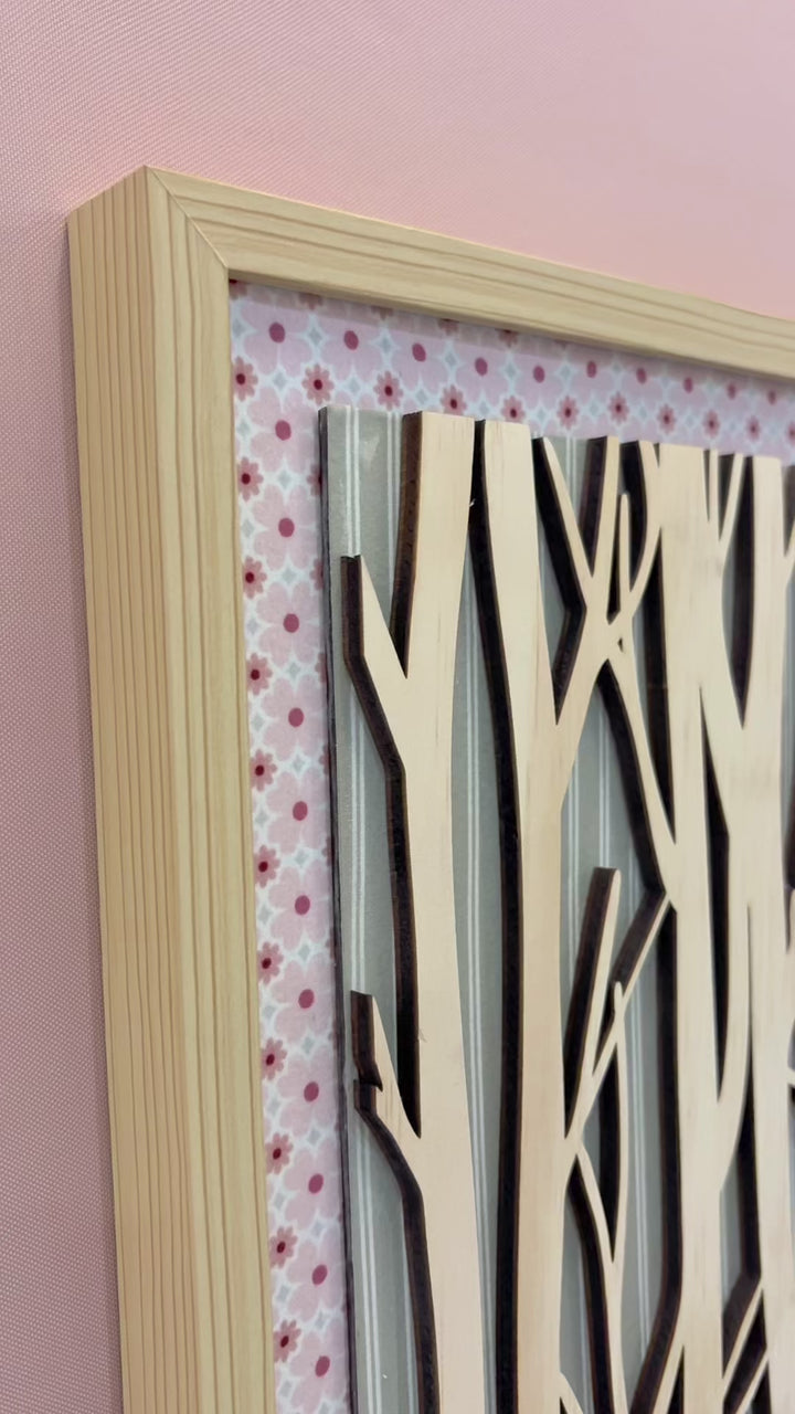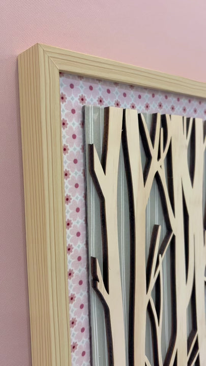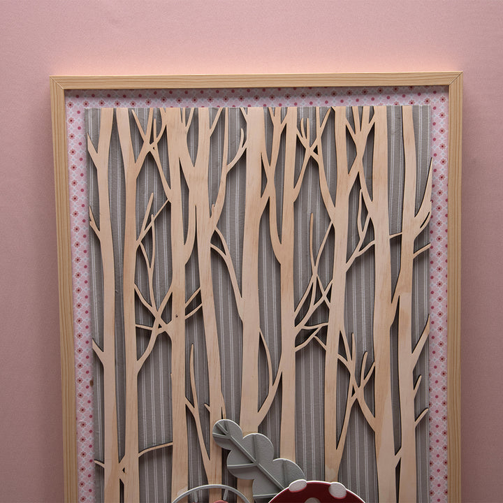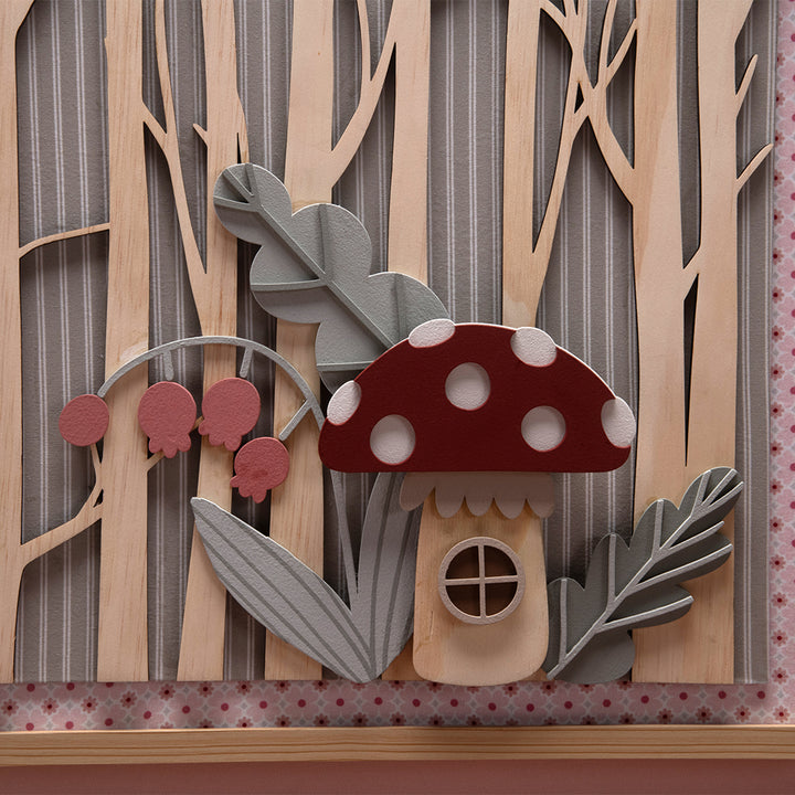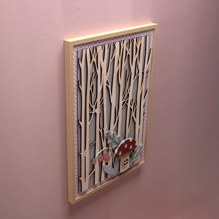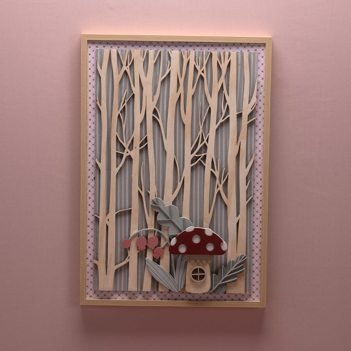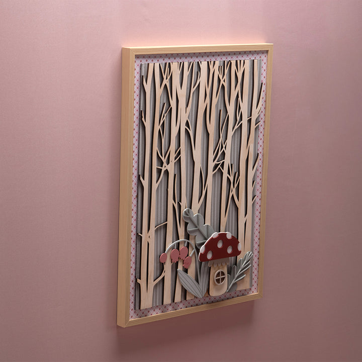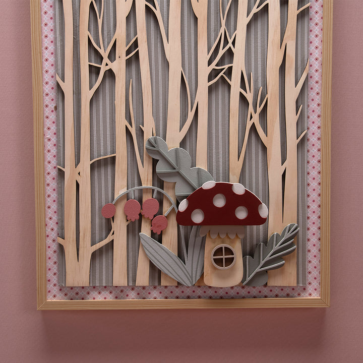 Transform your baby's room into a fairytale setting with the Fairy Forest Decorative Frame. Made of layered MDF with a raised texture, it depicts an enchanted forest, where tall branches hide magical secrets and a small red mushroom guards the entrance to the fairy world.