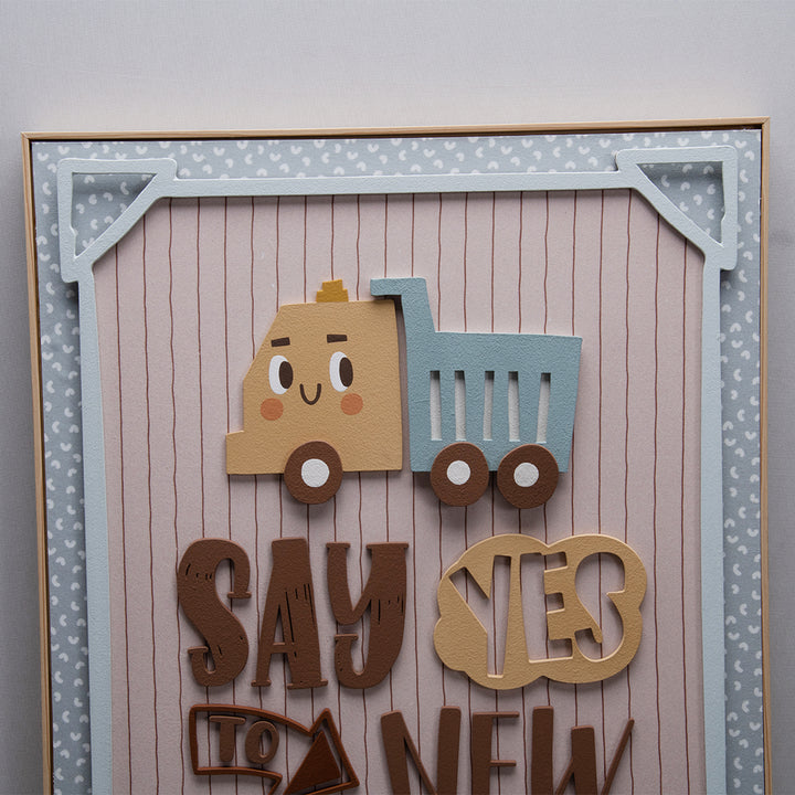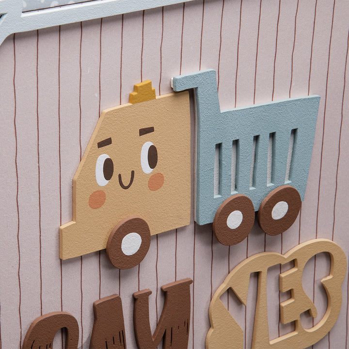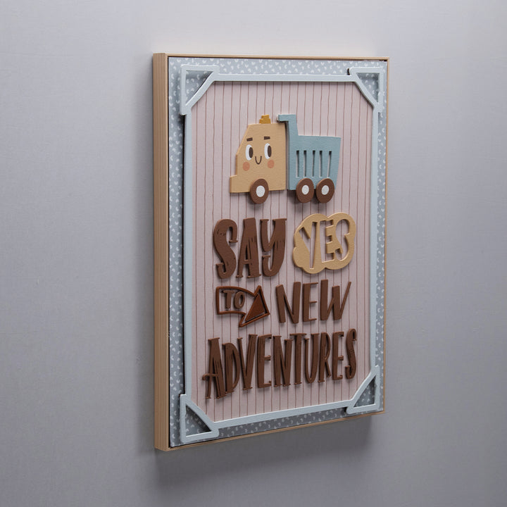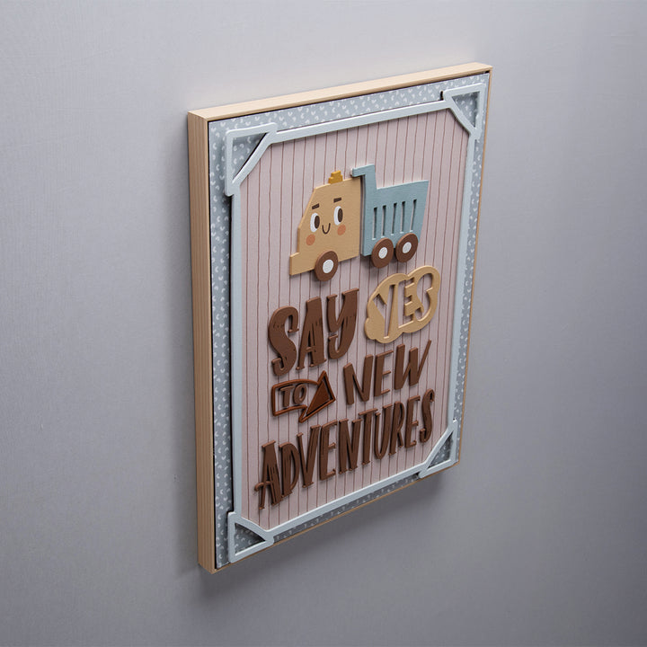 The New Adventures Frame is made of 100% MDF with high relief application , and features the charming phrase “Say yes to new adventures” accompanied by a smiling little truck – as if inviting the little explorer in the house to discover the world with joy.