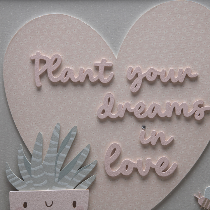 With a soft heart in the background, a smiling vase, and an inspiring message— “Plant your dreams with love” —it becomes a daily reminder to nourish life with affection, patience, and tenderness.