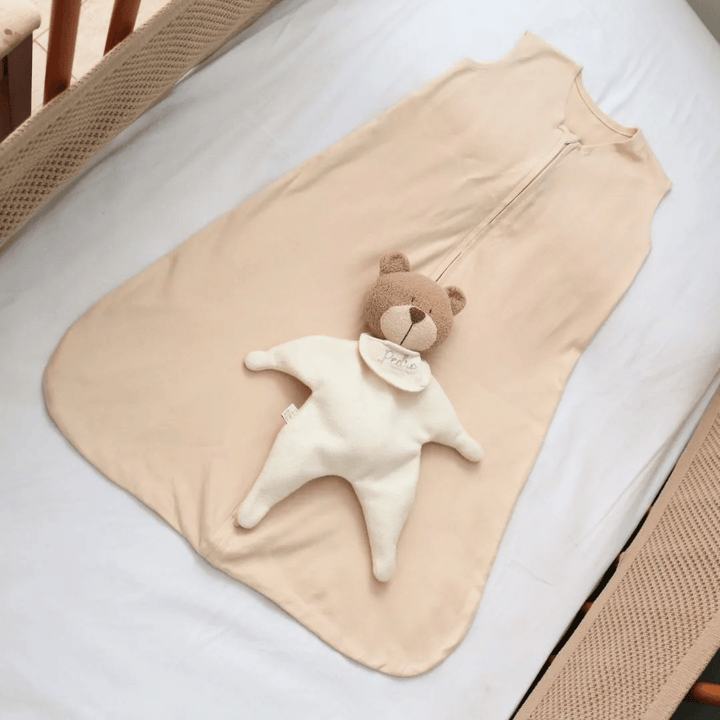 Your baby's sleep deserves the same care as a hug. With that in mind, the Aime Baby Sleeping Bag , made from 100% Egyptian cotton suede , offers the perfect combination of comfort, freedom of movement, and security . Ideal for babies aged 6 to 12 months , it's an essential item in their layette.