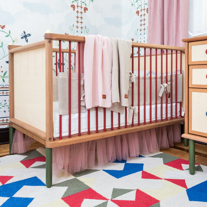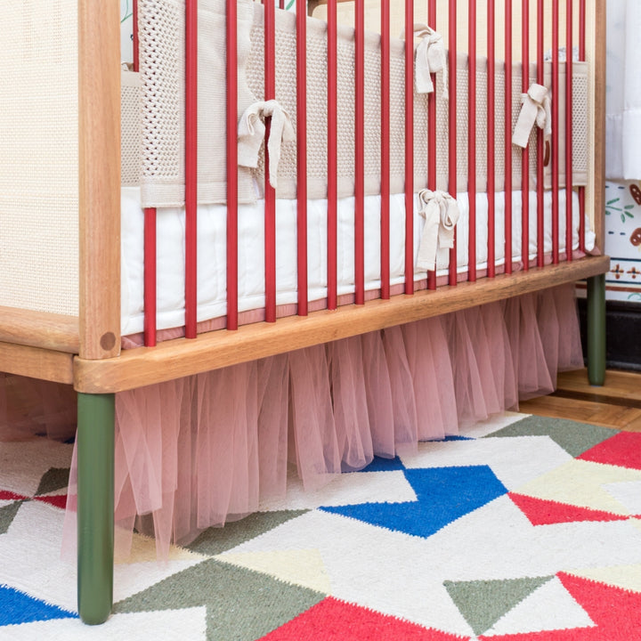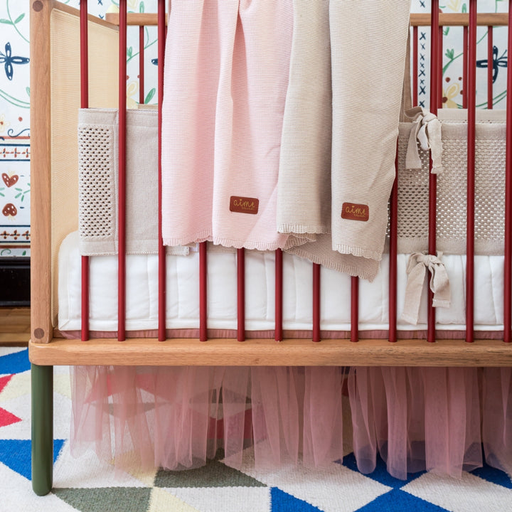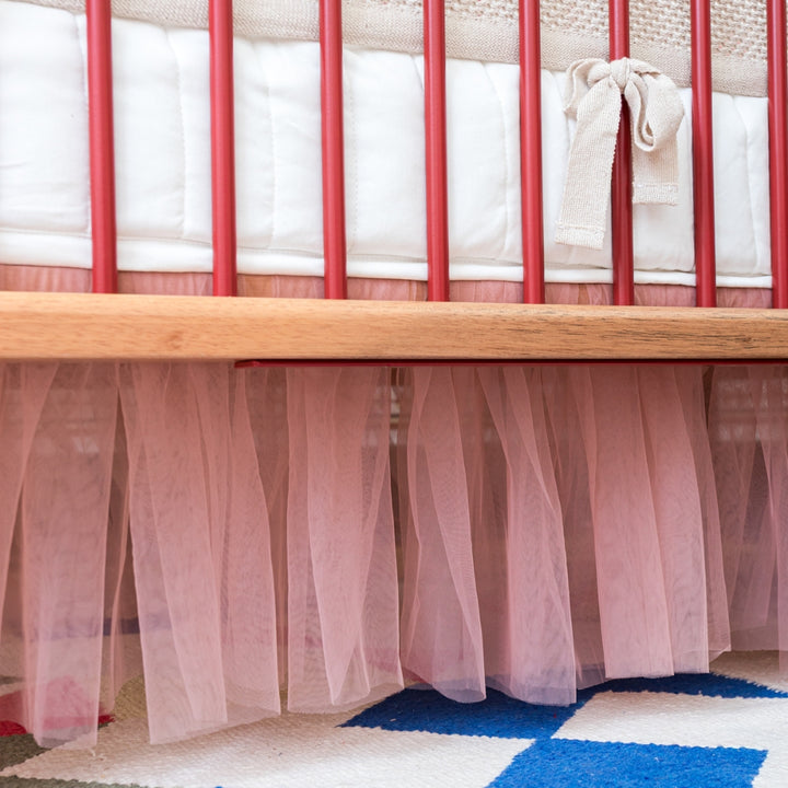 Transform the crib into a fairytale setting with the Pink Cloud Crib Skirt. Measuring 1.37m, it's made of soft polyester and finished with a delicate pink tulle hem, bringing lightness, movement, and sophistication to the room.